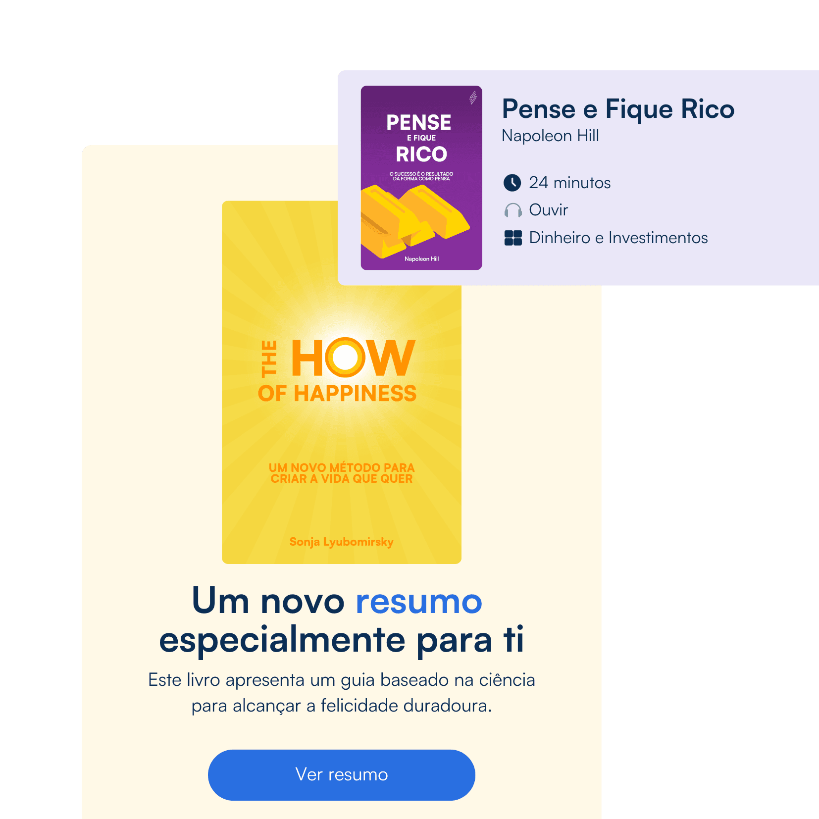Resumos de livros de desenvolvimento pessoal.