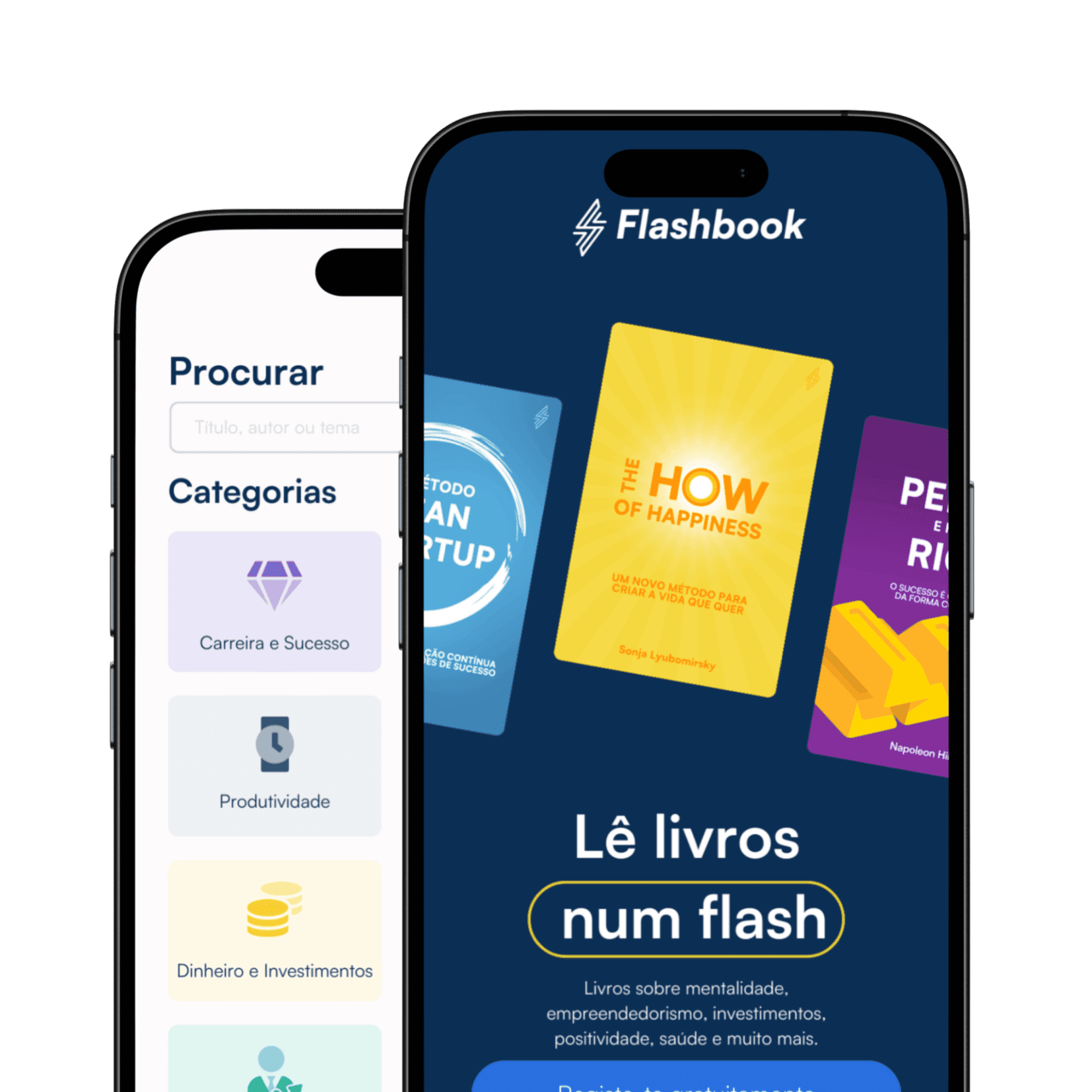 A Flashbook cria resumos de livros de desenvolvimento pessoal. Estes livros abordam temas como mentalidade, empreendedorismo, finanças pessoais, investimentos, comunicação, atitude positiva, saúde e muito mais. Os nossos resumos são concebidos para que possas lê-los ou ouvi-los em 15 a 20 minutos. Depois de os leres ou ouvires, ficas com a certeza de que absorveste toda a informação essencial!