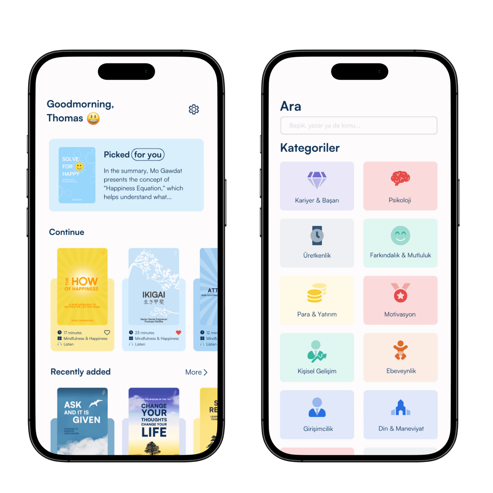 Daha önce belirttiğimiz gibi, tüm özetler Türkçe olarak, hem metin hem de sesli formatta mevcuttur, bu da Flashbook'u Türkçe Blinkist yapar. 7 günlük ücretsiz deneme süresinin yanı sıra, ayrıca Flashbook örneklerinin bulunduğu bir sayfa oluşturduk. Burada bazı özetlerin önizlemesini görebilirsiniz. Tüm içeriği okumak veya dinlemek için ücretsiz bir hesap oluşturabilirsiniz.